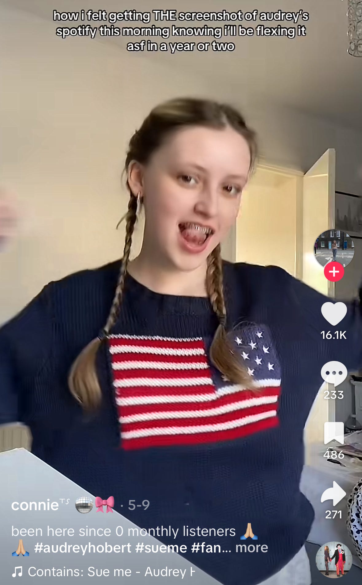 Audrey Hobert’s fans – in a similar way to Swift’s – are also preoccupied with ‘lore’ and inside jokes. There’s one about sushi that I’ve seen mentioned numerous times (and that I frankly don’t have the brain cells to try and research), but often in the context of, and I’m paraphrasing, ‘future fans will be so confused when we bring the sushi joke up’. These inside jokes feel less like light fun and more like part of a larger effort to gatekeep, replacing the humour and connection that are a product of these inside jokes with a passive elitism. Even Swift, with her extensive catalogue of Easter eggs, has fans more than willing to explain the lore to newcomers. (I became a Swift fan not long after the ‘five holes in the fence’ saga, but the collective trauma it inflicted on the fanbase makes me feel like I lived through the episode myself.) Swift’s official fan page, Taylor Nation, openly celebrates this lore too; Hobert’s ‘sushi’ joke, by contrast, is being gatekept by ‘day one’ fans.